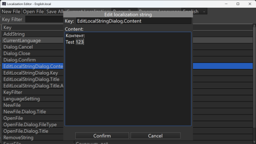 Localization Editor is a tool for creating and editing localization/language files which your game or application can use to support several languages.