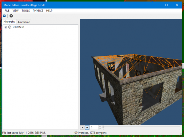 I have the Cottages package from the Workshop and try to add a Poly Mesh collider to Cottage 1 or Cottage 2. This appears to work fine: But when I run the game, the outside walls have no collision. Reopening the MDL I find that it is clear they are lacking that part of the collision mesh somehow: Is there any way I can fix this or is it just a bug?
