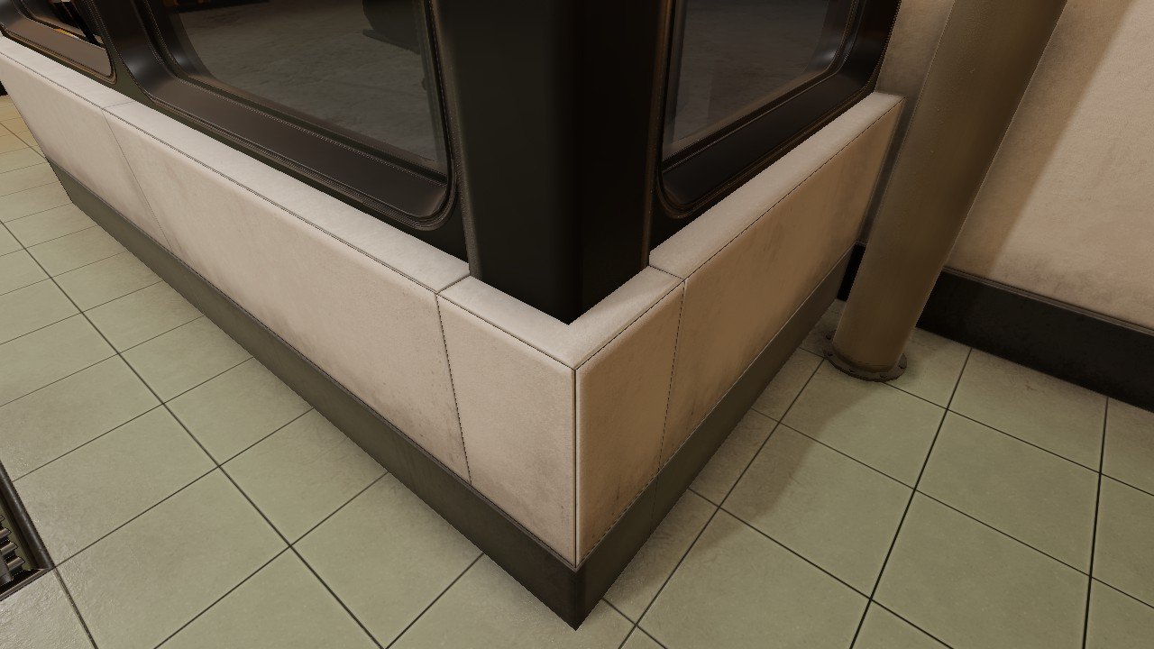 Edge bevels set to 3 cm, combined with some texture detail aligned precisely to the geometry corners, turns a plain sharp corner into so much more.