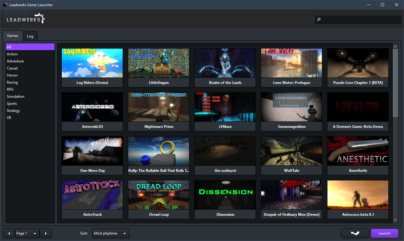 Leadwerks Game Launcher has received a much-needed updated, with a new interface and features to help you easily self-publish and play free mini-games on Steam. The launcher has been completely rebuilt from the ground up, offering a smoother, more intuitive experience with a sleek, dark interface with improved DPI scaling for a crisp look on any display. Navigate your library with ease—games are now sorted by playtime by default, giving you a clearer picture of what players enjoy, beyond simple votes. Finding your favorite games is easier than ever, thanks to the new search bar. The core game executable has been updated to Leadwerks 4.6, with support for upcoming Leadwerks 5 titles in development. Leadwerks 4.3 is included as an option for games that require it. If your game needs to run with Leadwerks 4.3 or another specific version, please let me know. Have fun with the new game launcher, tell your friends, and let us know how we can improve your playing and self-publishing experience. Future development will focus on improving the responsiveness of the interface, adding new features, and adding support for Leadwerks 5 games. You can get Leadwerks Game Launcher for free on Steam.