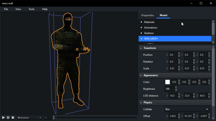 @Josh When I set the model's physical collider to box (fig.1), the model falls to the floor at the start of the level (fig.2). But when I set the model's physical collider to mesh (fig.3), the model doesn't fall to the floor (fig.4).
