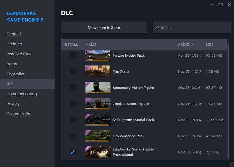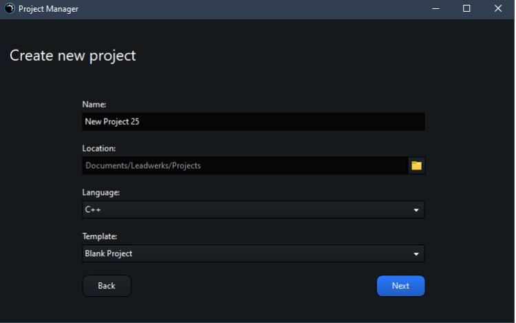 Right-client on the application in the Steam interface and select the Properties menu item. Make sure the DLC is installed (check the box): When the DLC is installed, the projection creation template will show C++ as one of the options for the language: This will allow programming with C++ and Visual Studio 2026: https://www.leadwerks.com/learn/Programming?lang=cpp -