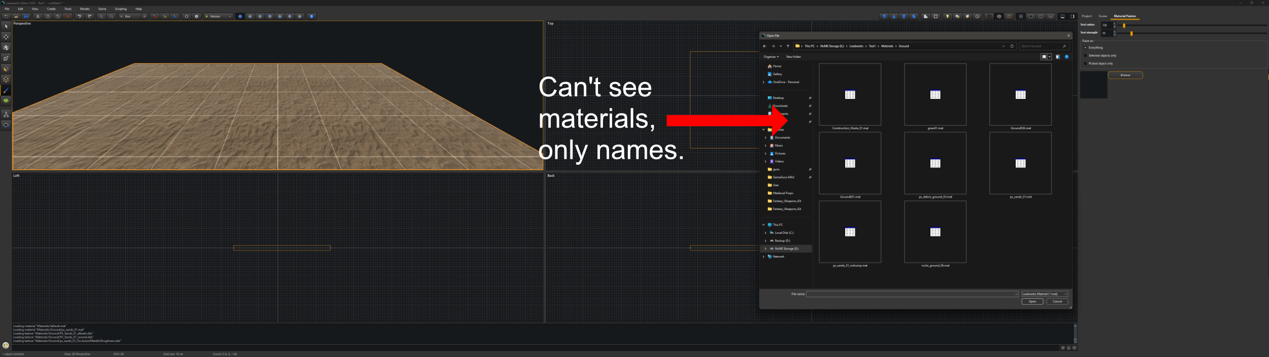 When painting materials on brushes or for terrain, when you go to select a material, you get a 'open file' window that cannot show you what the material looks like. All the end-user can do is read the name of the material. As an artist, I am very visual. I need to see the material to determine if it's going to work with what I have in mind. I'd really like it when selecting a material for painting, whether for painting on a brush or terrain or anywhere else where I'd need to select a material, I'd get some kind of preview and not just names to read. Thanks.