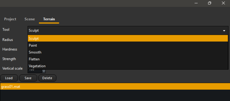 For the terrain editor, I think it would be nicer and faster to work with if we had a set of buttons for sculpt, paint, smooth, flatten, and vegetation instead of a dropdown selection menu. To switch from one tool to another, you need to first click to expose the dropdown menu, then click on the tool you want, If we had 5 buttons, all the end-user would have to do is click the button (one action instead of two). Thanks.