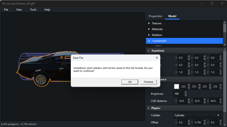I use assets from Unreal Engine 5 as a source for static objects. In this case, you can limit yourself to completely free asset sets, or you can purchase assets you like; fortunately, the Unreal Engine Marketplace offers a huge number of excellent assets. Unreal Engine has a poor saving of objects in the FBX format. The objects it creates come out without materials, which is very bad. I have to save objects in the GLB format (fortunately, Leadwerks 5 can load objects from this format). However, in this case, animations are not saved in the asset; at least, Leadwerks 5 cannot load animations from this format. However, the resulting static objects are cool, perfect for decorating your game levels. Furthermore, in Leadwerks, you can create collisions for such an object, making it a functional addition to your game. As I mentioned above, Leadwerks 5 can load both formats: FBX and GLB (GLTF). But animations can only be in the first of these. I'm not sure if this is a format limitation, or if @Josh hasn't finished the loader yet, but that's the current situation. I hope @Josh can clarify the situation. However, Leadwerks 5's native format is MDL. Therefore, it makes sense to use the engine's internal converter to convert every object used in the game from the above formats to MDL. Not only you can save added object collisions in MDL, but objects saved in MDL load faster. If you have any other art sources, please share them in the post below. I'd be very interested and helpful. And it would be really cool!