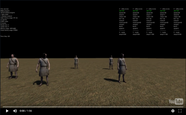 Working on two principles K.I.S.S. (keep it simple stupid!) and more for less. I spent a lot of time researching (read playing) certain games that have what I call an ambient NPC population. This is specifically those NPC's that reside in the background and generally have no real or very limited interaction with the player. Two such areas of research <coff> included Assassins Creed and Fable 2. Although both of these games have a far more complex general NPC population than what I am setting out to create, but the "research" was most enjoyable. First Step: Machine Intelligence "Kinda Almost": Machine Intelligence "Kinda Almost", simply gives an illusion that there is intelligence at work but there is not, sort of like, the lights are on but no ones home. There are several subsets to this group but the obvious one is simple animation. Also this can include proximity reaction behaviour, a posh and complicated way of saying when the player is near, stop what you are doing, and do this instead. But that's as far as interaction goes for those NPC's in this group. This simple ambient NPC type could also use lua scripts, loaded with the level and be left to attend to themselves. For example, just two chaps having a chat: Having a chat is basically all they do, its simple per character animation's controlled by lua scripts. The purple block volume is the walkable area that would be utilised by more "advanced" ambient NPC's, typically those that move about, particularly those that would use Pre-Loaded and Pre Calculated path routes for this particular level. The purple block volumes are simply required by the application I wrote to generate the route node data for the pathfinding tools I created and have demonstrated here. Not that this is a level just something thrown together for testing but I think I should unarchive some of my GMF format models and put together a small town/Village for testing this, rather than another simple "BlocksVille". There are obvious limitations to consider with this approach to the first tier of the Ambient NPC population for a "busy" town/village. The NPC's need animation's, most come with maybe 15 animation's (if you're lucky). My intention is to surmount this by adding animation's to them, primarily Mo-Caps. This will require a little work but will be the bedrock for the construction of this "tier". There are some very good applications on the market for achieving this. For me I prefer Fragmotion, there is also a free alternative that I also use on occasion called Pacemaker. But don't be fooled though, none of these applications will do it all "for you", you will need to skin the mesh to the correct rig for the plethora of free to use Mo-Caps, or indeed ones that can be purchased. It will all depend on budget and or requirement. This is still only a very basic outline for this "packing" stage, it will still require a lot of work but my goal is to get the impact of it at runtime to an almost negligible effect even when including proximity reaction behaviour.