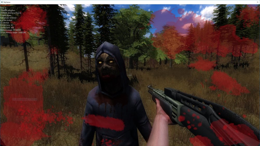 Hi, Just enjoying this new release of Leadwerks 4.4 and decided to make a map with vegetation just for fun. Not really tried the terrain tool before today, and I'm really impressed. It really good and precise to use! I'm using the Zombie pack addon and the fps pack addon. I've placed 5 zombies in a group near of a "bunker" i've made with brushes. I've got the game almost stop when the zombie see the player, and found that the game update were going in 7000+ms update time, was not a render problem. In debug mode, the FPS drop to about 0-1 fps. ... EDIT: Fixed the issue for the update time, by creating a new project and a new map. Adding back the zombies did not create any issues. So I suspect that is related to all the changes since then. The "mygame" map I was using, was made since Leadwerks 3.1 and was updated by the project manager at each release! EDIT2: Found out the REAL issue with it. I started putting tons of vegetation again and enabled COLLISIONS for the tree and this is what make the problem with the NPC. Disabling the collision on the vegetation layer fixed it. So something make the update really-really long if you put collisions on vegetation models and use NPC's.... With the new map, I was not able to have the game work in debug because it crashed on launch. (I've recompiled the game with MSVC), but the release build work 100% ("esc" key now display me the new GUI menu) The debug build seem to crash on newton... Is this because I've recompiled the project with MSVC community 2015? I've got a game crash each time the player is being killed by NPC. I tested it with the crawler and the zombies and it's doing the same thing. Each time the player is being killed, the game crash with an exception error. (The screenshot is the last to display when the player is killed and the game crash)