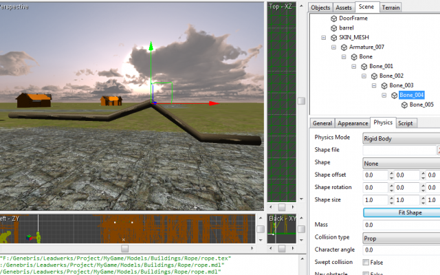 I have made a rope model and attached bones to it, I can properly move bones in the editor, but when I add mass for one of the bones, this part of the rope simply disappears. How can I make bones act like props so I could connect them with ball joints?