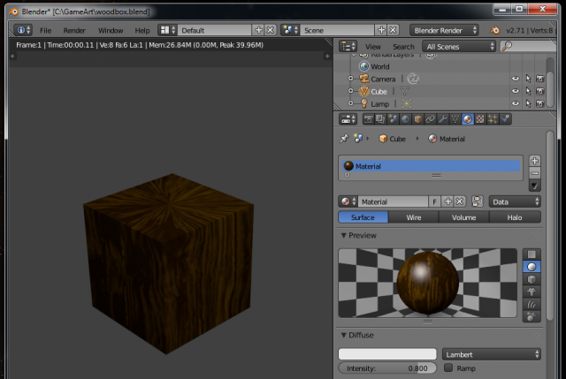 I used the Blender Exporter and exported a simple box with wood texture but in Leadwerks Editor it is without texture. This what I made in Blender: And after exporting it to Leadwerks: I can't figure out what I did wrong with this. How do I get the texture to show up?
