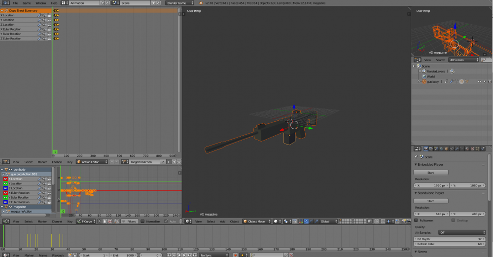 Hello! I am new to Leadwerks, but not new to the world of enthusiast game development. Leadwerks has caught my attention, and I have purchased the indie edition and hope to start developing games soon! That said, I have some questions I would like help with. 1) Whats the best way to export from Blender 2.69 to Leadwerks? Using OBJ to GMF, or using FBX? I will eventually need animation (and possibly physics) data for some items, and OBJ can't do that as far as I know. 2) How can one resize GUI elements inside the Leadwerks editor? I can't seem to resize anything inside the editor. 3) How does one add arms and a weapon to a first person player controller? A tutorial would be nice, I will continue hunting for one myself too. 4) How does one add a player model that will be displayed ingame? Like, if I'm looking at an enemy, I need to be able to change that player model. I'm running Linux Mint 17 (which is based off of Ubuntu 14.04) so I have no problems running the editor or any bugs at this time. Sorry for the somewhat noob questions. All help is appreciated though! All the best, JohnBobSmith