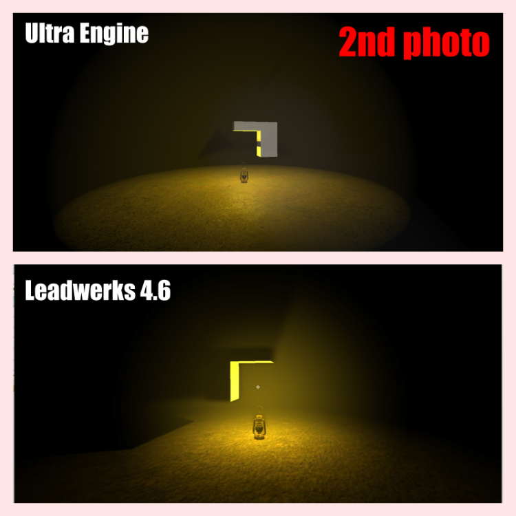 In this post, I will compare volumetric lighting and particles in Ultra with Leadwerks. 1- Volumetric Lighting The volumetric lighting in Ultra Engine is very poor, so I recommend the volumetric lighting from Leadwerks 4.6 to be brought to Ultra. Because; 1.1- The volumetric lighting in Leadwerks looks realistic than Ultra. (Check 1st photo) 1.2 -The volumetric illumination value cannot be increased directly; to do so, the “brightness” of the light must be increased. 1.3 -Causes an FPS drop (I'm not sure if this is only happening to me) 1.4 -When you move a little away from the light source, the volumetric lighting is not visible. 1.5 -Volumetric lighting in Leadwerks dynamically emits light based on surrounding objects. in Ultra, volumetric lighting is static. (Check 2nd photo) In other words, the current volumetric lighting in Ultra is an incomplete feature. 2- Particle Effects I'll speak for myself about particle effects: The particle effect settings are confusing. I can never get the particle effect I want. For example, I couldn't figure out how to change the speed of my particle effect in ultra. Or the alpha value, duration time etc... Also, the curve editor in Leadwerks was a good feature. For example, I don't think such a particle could be produced in the same way in ultra: The particle effect in Leadwerks had more features and was easier to understand. At least, I knew what I was doing in Leadwerks.