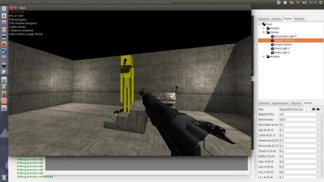 After 1 week learning LUA Script in Leadweeks, with asistance from our mighty members (macklebee, Josh, Brutile), I have created a test ragdoll and a gun to shoot it. Ragdoll's limbs are dismemberable too. These are videos about my work (this one has a better quality) I feel so excited now. I want to go further... I mean How can I "attach" this ragdoll skeleton to my character Mesh? I used Blender Export Addon for Leadwerks, after that I only got a .mdl file with out any bones in it. I created bones for my character in blender. I noticed that bones are still remain with exported FBX file but I don't know how to use those bones Can anyone give me some suggestions about my question ? Just show me the right way. I will follow hehe. Thank you guys ========================================== (Edited in 160222) ========================================== This part is for members who want to refer my ragdoll code. I know these codes are not perfect and surely need more development. You are free to adjust my code. If you find out any better method to improve it, please reply in this topic. I know I am still new with LUA Script and game programming. Here is the instructions: Create a new Map then a Box for a ground. Create a Pivot, place it right on top of the ground box, name it "Ragdoll spawner" or whatever you like. Attach "RagdollChest.lua" to this Pivot. You can change any parameters of Ragdoll, everything will be auto adjusted to produce a desired ragdoll form in your map's scene. Create a Camera then attach "CustomFPSPlayer.lua" to it, Drag above "Ragdoll spawner" into "Target ragdoll" and choose "fire sound" in Script tab. You should change the default weapon model (around lines 46 - 48) That is all !! Press F5 and have fun. Control: Left Mouse = Shoot Right Mouse = Iron Sight Middle Mouse = Reset Ragdoll ADSW = Movement control X = FreeBone Style1 C = FreeBone Style2 (default for bullet impact on ragdoll) RagdollChest.lua CustomFPSPlayer.lua